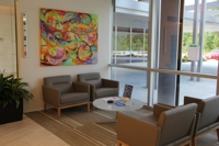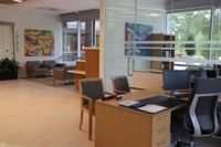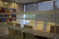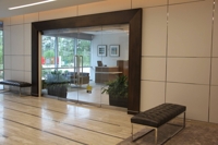 We recently put the finishing touches on the interior build-out of Independent Bank, 2829 Technology Forest Blvd., in the beautiful "suburb" of Houston known as The Woodlands. Dmac headed up their interior build-out in a recently-completed four-story, Class A office building. Designed by Marty Comeaux, of Harrell Architects (www.harrellarchitects.com) the 5,362 SF space on two floors has an abundance of natural light streaming through the existing curtain wall glazing system. Replicating the beauty of The Woodlands, many high-end finishes were used in the build-out, including: Armstrong suspended woodworks linear cloud system ceiling in the lobby; frameless glass walls; Microlinea pendant LED lighting in the lobby; and custom millwork teller lines. If ever you're in the area, do stop by ... and maybe open up an account while you're there!