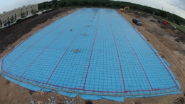 (3-19-15) We were off to an early start over the weekend as the pad was poured for our newest sports facility project, Supreme Courts, home of Elite Volleyball. The panels are ongoing now and should be poured out next week. Panel/steel erection should start the first full week of April. Elite Volleyball's facility is located on three acres of prime property across from Katy Mills Mall on Kingsland Boulevard, in Katy, Texas. The 30,160 SF building was designed by Three Square Design Group. Upon completion it will house six courts, administrative offices, a training area, a pro shop and concessions. Structural features include: conventional steel structure with tilt-wall skin; TPO single-ply roof; and a modern window design to allow natural light into the building and create visual interest on the exterior. The steel joist girders will span 82’ over the court area to allow for a column free playing environment. Keep following us for updates on this exciting project as they become available.