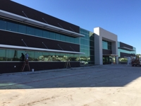 (1-15-16) We're pleased to announce that the shell is complete and "hand-off" to Cirrus has recently taken place. Designed by Scott McCarthy, with MIII Designs, the 17,500 square foot painted tilt-wall/conventional steel structure will house Luminess Air. The Owner acquired the 1.33 acre site for expansion of their facilities. The exterior features 1” insulated low E glass windows in clear anodized frames at the office side, and clerestory windows in the packaging/warehouse area. An aluminum canopy shields the entrance doors and a .60 mil TPO roof with R-30 insulation covers the entire structure. 27,000 square feet of paving includes the truck well and grade level door. Upon build out, this facility will include offices, photo studio, showroom, and packaging and warehousing of product lines as part of the company’s Phase II build-out.