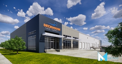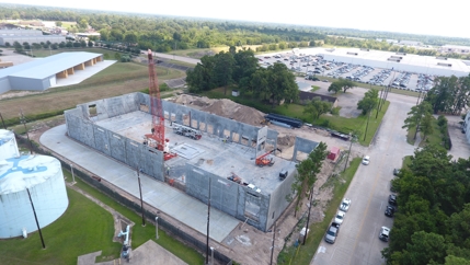 (8-26-20) Groundbreaking recently took place for the new facility of Global Eagle Properties, aka Deckhouse Shipping Supply. The 30,055 sf tilt-wall and conventional steel building with TPO roof will be constructed on property not far from Houston’s Intercontinental Airport. Currently, the panels are up and steel erection is under way. The exterior has a panel form liner on the corner at each entrance; several panels adjacent to the entrance have a button insert with rectangular reveals that provide a great low cost design option for the panels. Keep watching for updates on this great new facility.