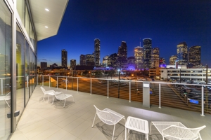 The building was designed by Method Architecture and includes a three-story atrium and an open-air top-floor balcony with amazing views of downtown Houston.