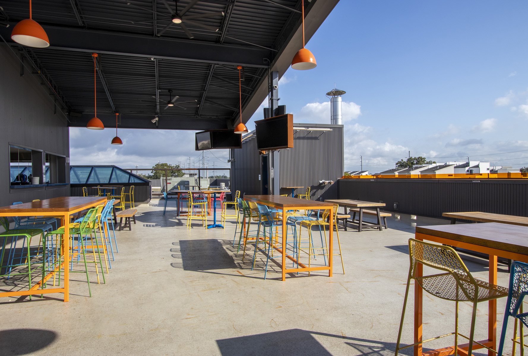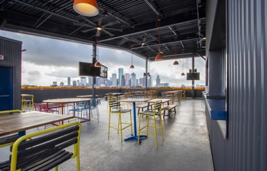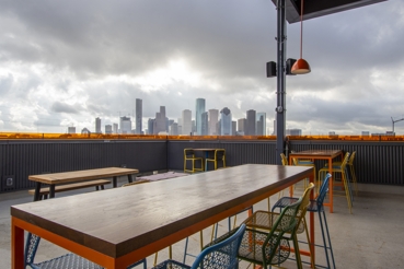 The third floor is a Houstonite's playground. This level features a large, covered rooftop bar with sweeping views of Houston’s downtown skyline and the vibrant Sawyer Yards Art Distruct, a private event space and an area for pop-up dining events.