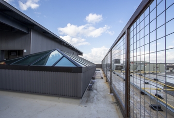 The rooftop patio also features a massive skylight showing patrons a bird's eye view into the working brewery, keeping the brewing process as a constant part of the experience.